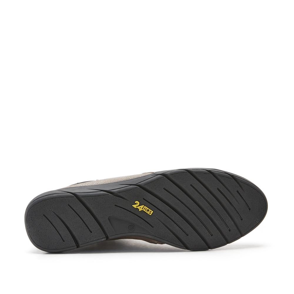 Botín tipo confort con elásticos de la marca 24 horas para mujer. Fabricado en piel de gran calidad con suela comoda y ligera para una mayor amortiguación., Color taupe