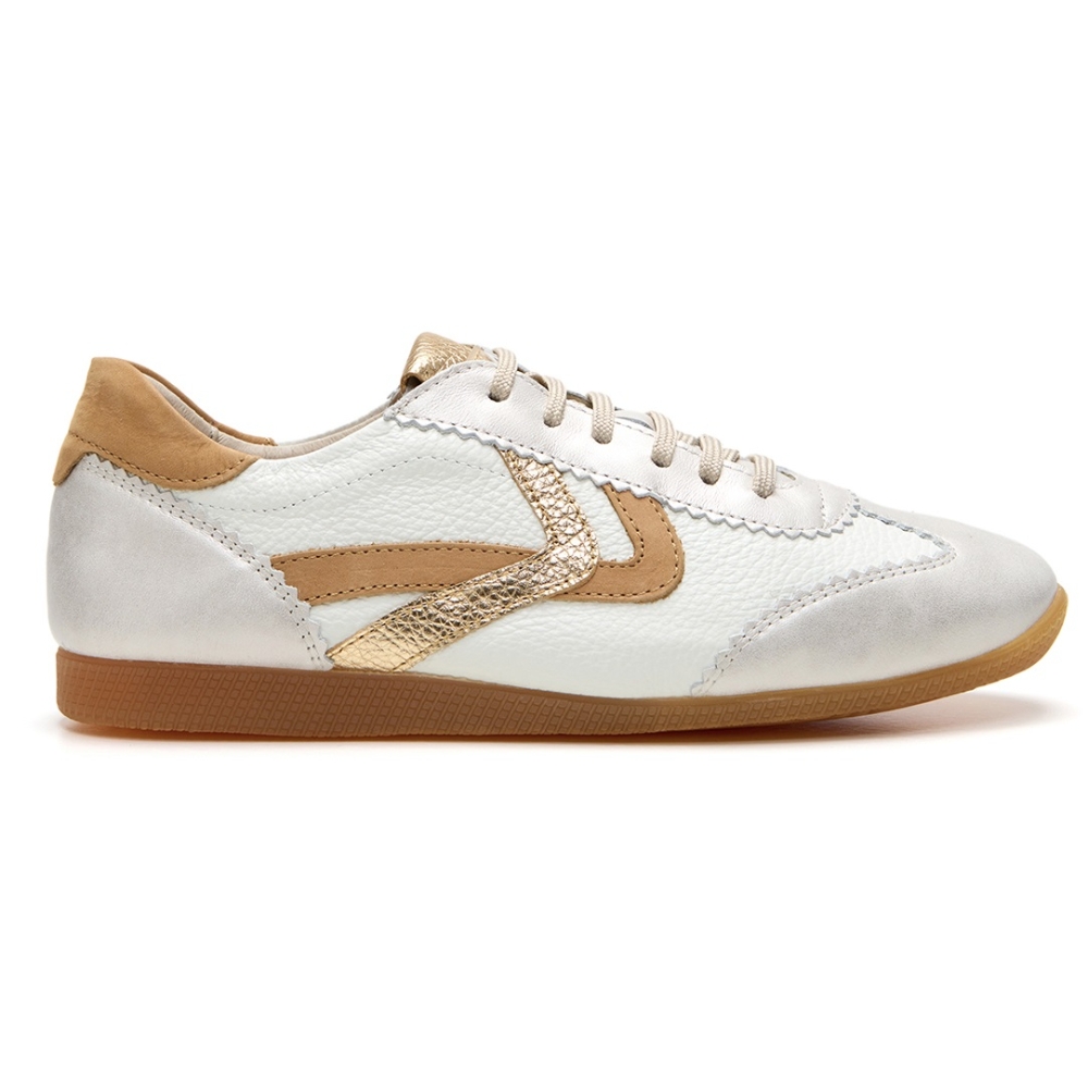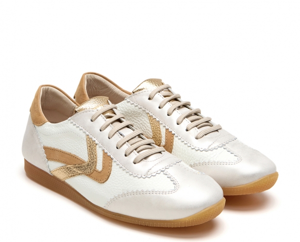 Zapato deportivo de piel de la marca 24 horas para mujer. Fabricado con piel de gran calidad. Color lino