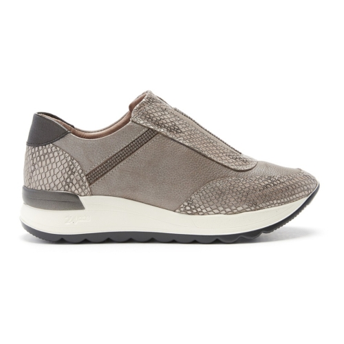 Zapato confort tipo sport de la marca 24 hrs para mujer. Fabricado en piel de gran calidad con elástico en el empeine. Color taupe