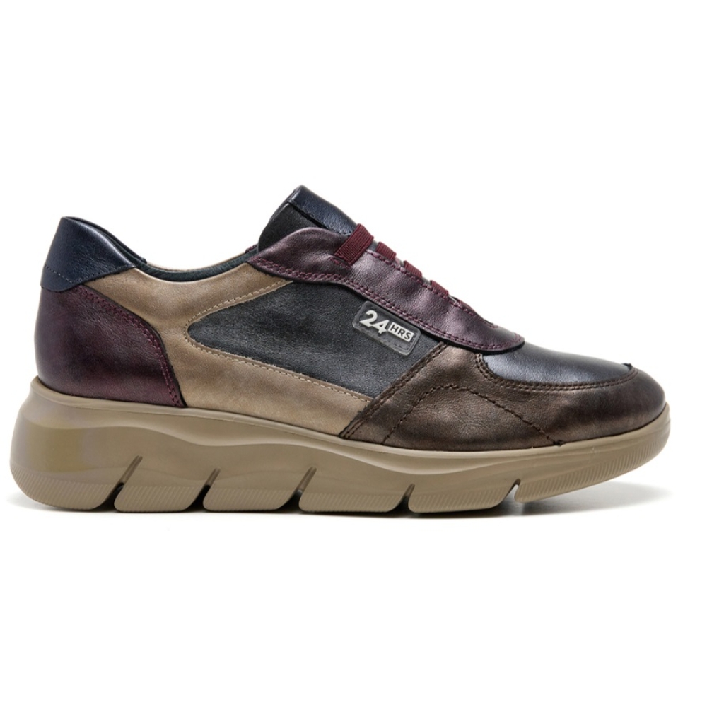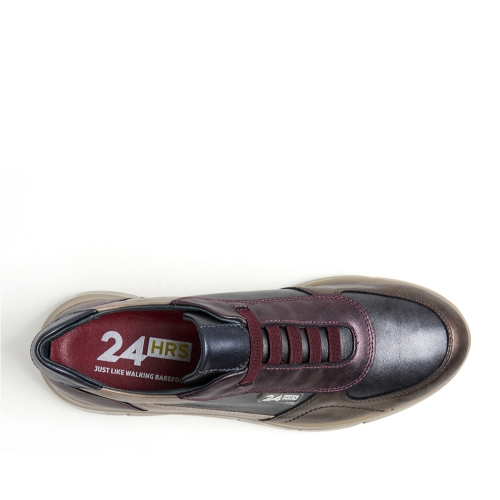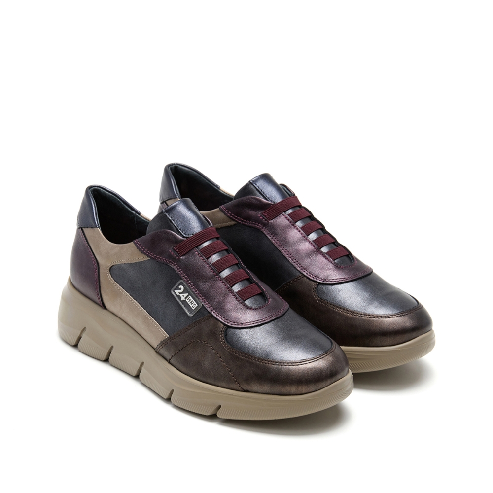 Sneaker mujer diseñada en piel combinada en metalizado con cierre de cordones elásticos. Puntera redonda, costuras vistas y detalle de marca en lateral. Este modelo incluye plantilla extraíble, suela dentada en EVA ultraligera con 5 cm de altura y alto confort. Es una opción urbana y hecha para armarios casual.