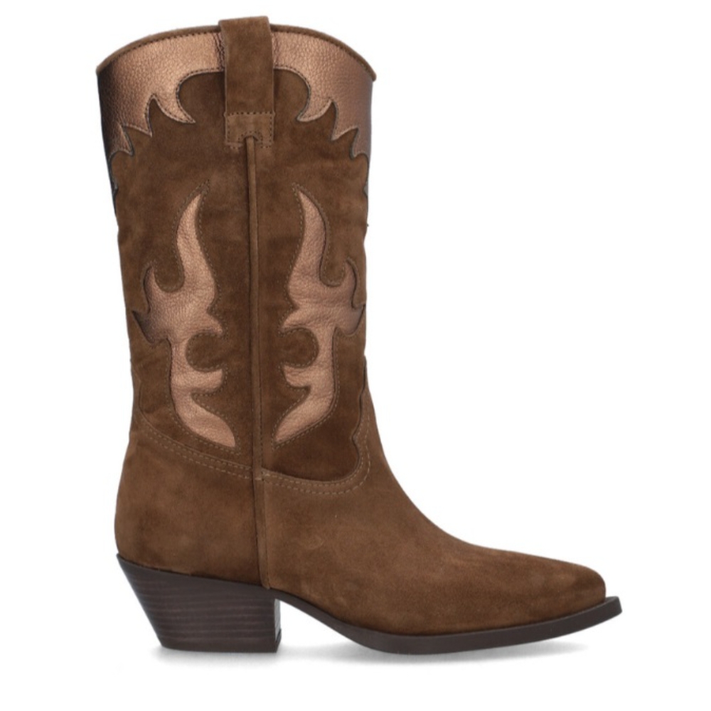 Bota estilo cowboy con tacón bajo de la marca Alpe para mujer. Fabricada en piel de gran calidad. Color marron
