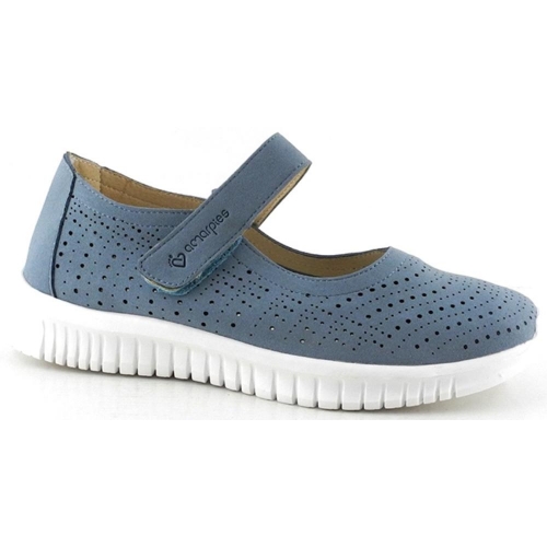 Manoletinas deportivas Amarpies AOG28353 para mujer en color azul. Características: diseñadas con material troquelada, perfectas para esta temporada, zapato casual con cierre de velcro, altura de piso 2 cm, zapato de estilo casual, suela de goma termoplástica, exterior sintéticocon forro suave y plantilla acolchada.