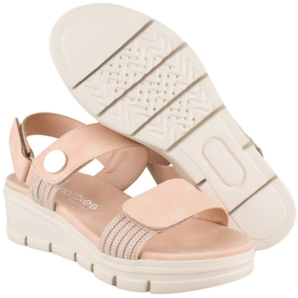 Sandalia estilo confort con cuña baja deportiva para mujer. Color nude
