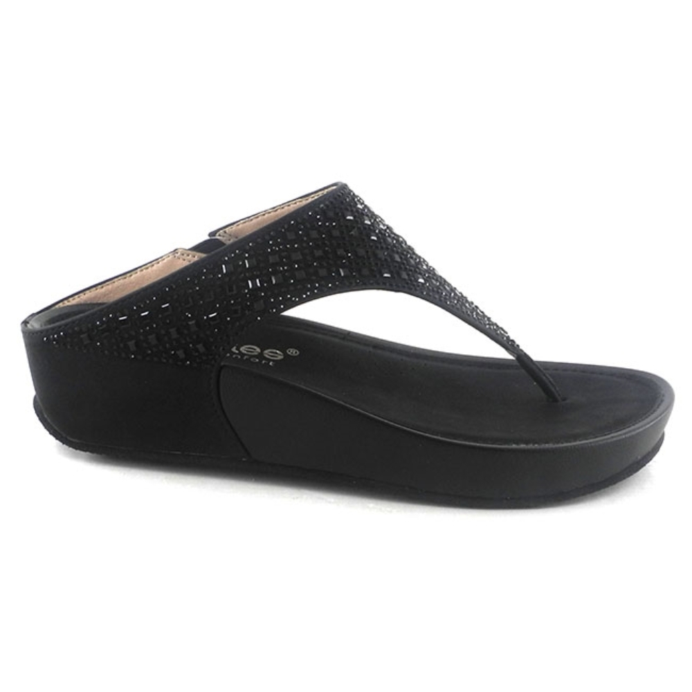 Sandalia de la marca Amarpies para mujer. Fabricada en material de gran calidad con detalles brillantes en el empeine. Color negro