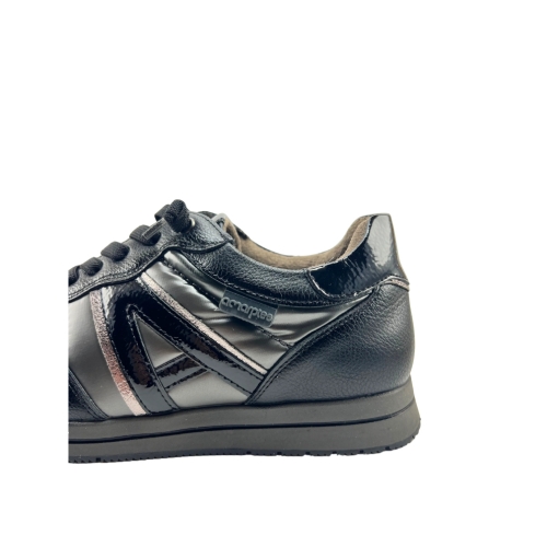 Descubre la perfecta combinación entre comodidad y estilo con esta zapatilla casual de Amarpies, ideal para el uso diario. Confeccionada en materiales de alta calidad, su diseño en color negro combina charol brillante y texturas suaves que le aportan un toque moderno y elegante.