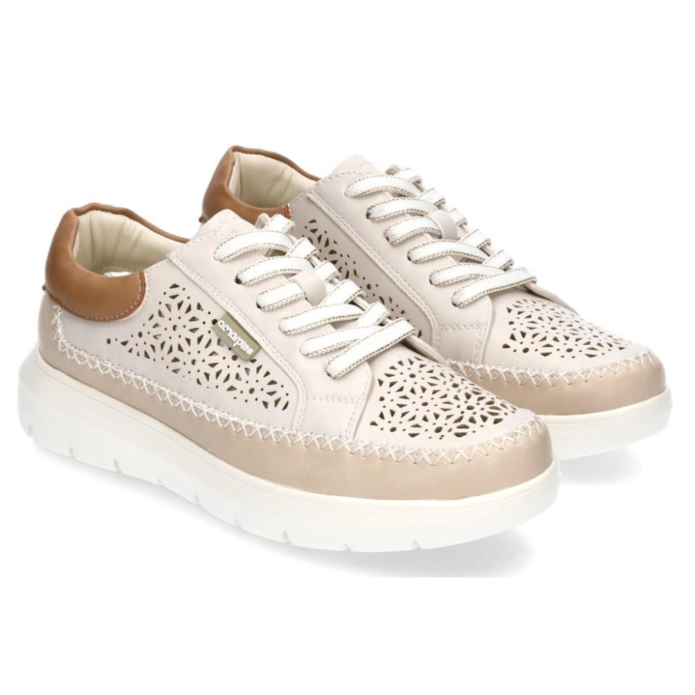 Descubre los Zapatos con cuña AMARPIES ahi30061 en un elegante color beige. Diseñados para la mujer contemporánea, estos zapatos combinan comodidad y estilo con un tipo de cierre con cordones para ajustarse perfectamente a tus pies. Lucen un acabado exterior en polipiel y un material interior en textil que garantizan un uso prolongado. Su robusta suela sintética con plataforma de altura media entre 3-6 cm les confiere un toque de sofisticación casual. Destaca su Estilo Memory Sponge que se amolda a tus pies y asegura un confort extraordinario en cada paso. Pertenece a nuestra selecta categoria de zapatos para mujer y se distingue por su suela con plataforma. Únicos y atractivos, los zapatos AMARPIES en color beige son un imprescindible en el armario de toda mujer.