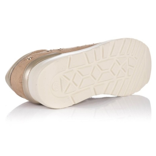 Zapato sport de la marca Amarpies para mujer, realizado textil ante perforado para una mayor transpiración, con pequeñas incrustaciones brillantes a lo largo de todo el modelo. Plantilla extraíble acolchada “Memory esponge ” que amortigua la pisada y se adapta a la forma del pie y su cierre con cordones elásticos facilita el calce. Modelo cómodo pensado para un uso diario combinable con varios estilos.