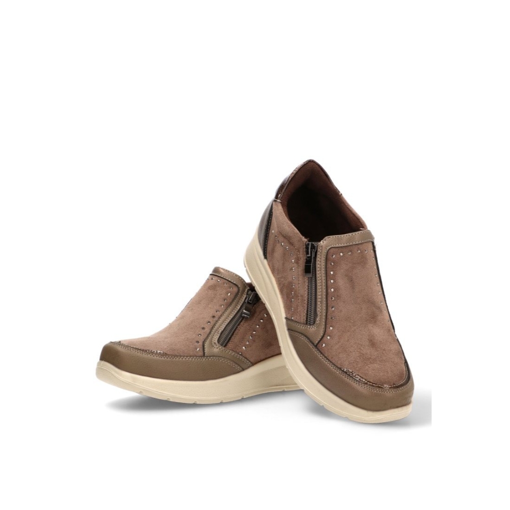 Adéntrate al mundo de la comodidad con los Zapatos con cuña AMARPIES atl29351 en color taupe. Diseñados para la mujer moderna, estos zapatos casuales son un imprescindible en tu armario. El tipo de cierre tiene una cremallera para asegurar un ajuste perfecto, mientras que su composición de polipiel y textil en el material exterior y textil en el interior proporciona una cascada de confort. La suela sintética con cuña aporta un plus de altura sin renunciar a la comodidad. Combina estos zapatos con cuña estilo Cómodo con tus outfits favoritos, y camina con estilo y confianza, sabiendo que tus pies están bien cuidados con AMARPIES.