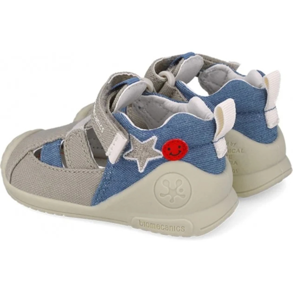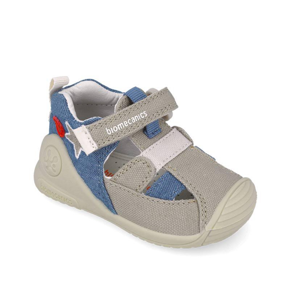 Las sandalias de lona para primeros pasos en color beige están diseñadas para acompañar a los más pequeños en sus aventuras diarias, proporcionando comodidad y seguridad en cada paso. Fabricadas con materiales de alta calidad, estas sandalias destacan por su ligereza y resistencia, características esenciales para el calzado infantil. El exterior de lona permite una adecuada transpiración del pie, manteniéndolo fresco durante todo el día. Además, la puntera reforzada ofrece una protección adicional contra golpes, asegurando que los dedos estén siempre resguardados. El cierre autoadherente facilita el ajuste perfecto al pie del niño, garantizando una sujeción firme sin comprometer su movilidad.