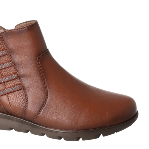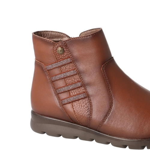 Botines Sport confort Flexpies  de mujer 1440 todo en piel, en color cuero con elásticos adaptable y cremallera para facilitar su calce y descalce, ya que se adaptan correctamente a tus pies, y sobre todo, si son esos pies sufridos que no aguantan cualquier zapato.