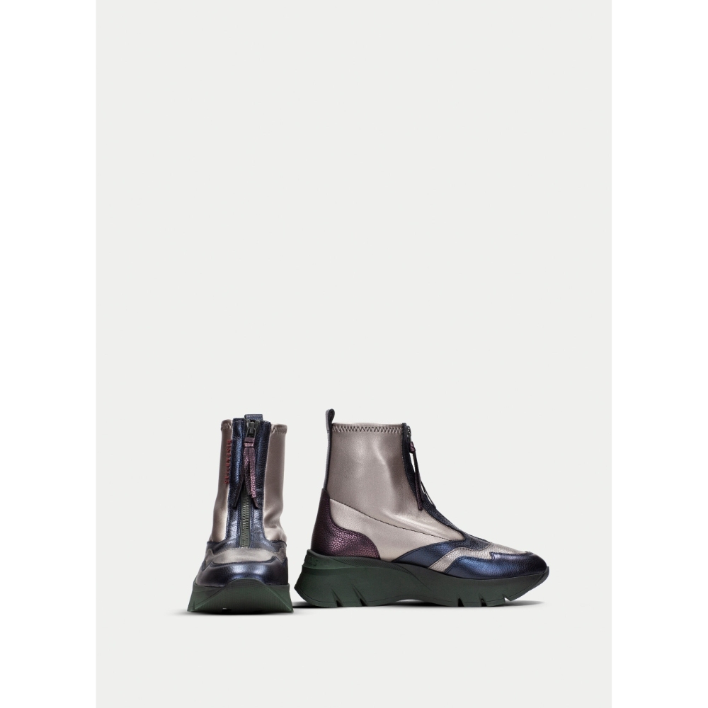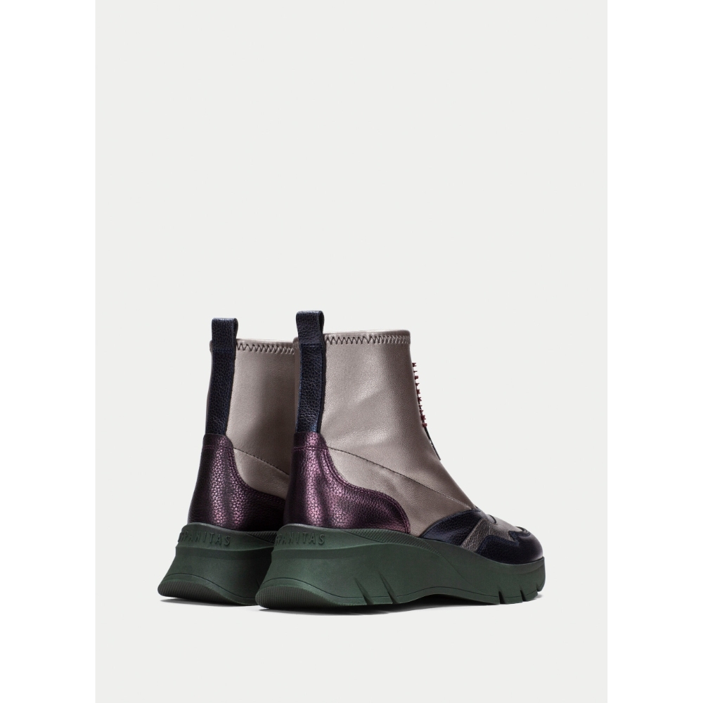 Botín sport con suela volumen de 5 cm y diseño de caña strech elaborado en combinación de materiales y cierre de cremallera en la parte frontal. Diseño estilo montaña y cierre de cremallera en el empeine con el nombre de la marca. Este zapato incorpora la tecnología TRIFLOW, y además cuenta con plantilla extraíble.