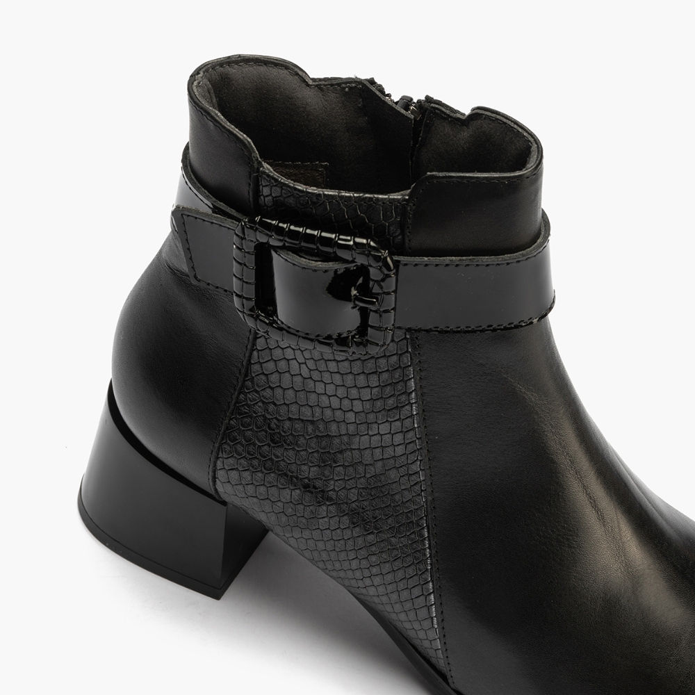 Botin con tacón bajo de la marca Pitillos para mujer. Fabricada en piel de gran calidad con cremallera lateral. Color negro