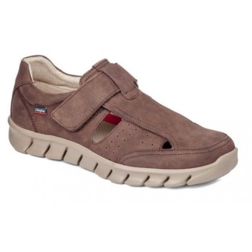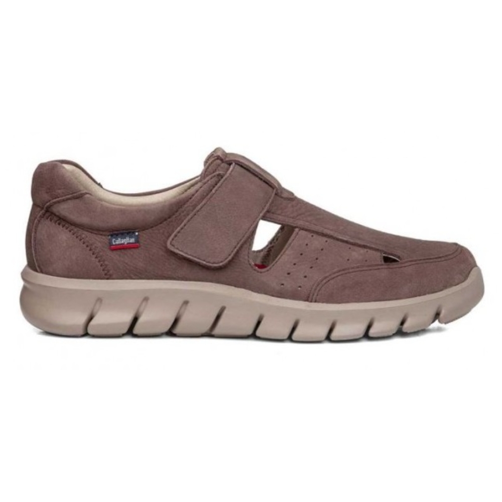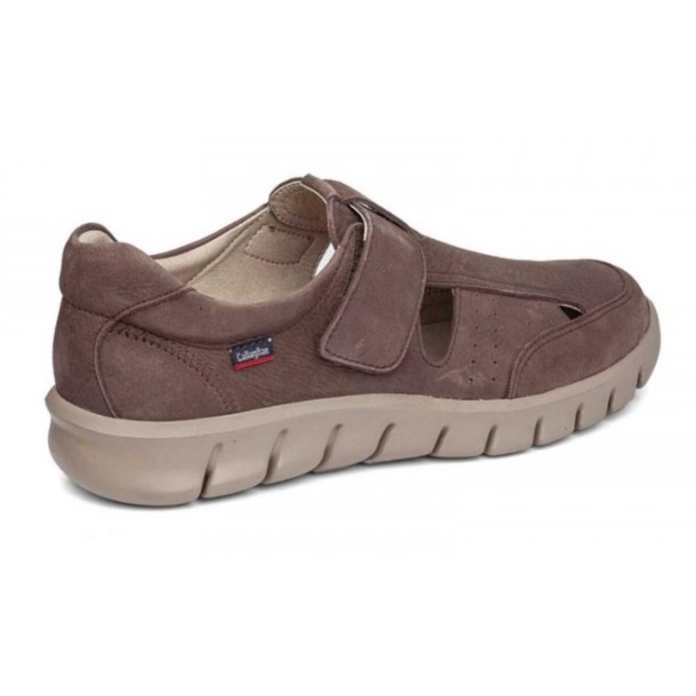Sandalia de hombre de CALLAGHAN elaborada en piel nobuk de máxima calidad,de aspecto aterciopelado color marrón