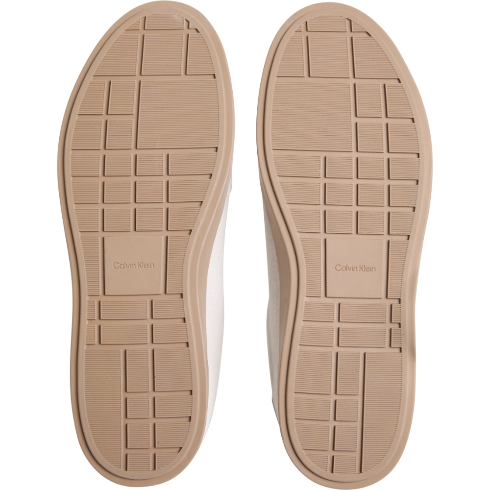Zapatilla tipo casual de la marca Calvin Klein para hombre. Fabricada en piel tipo serraje de gran calidad que aporta una suavidad y una comodidad extra para tus looks de cada día. Color beig con logo burdeos