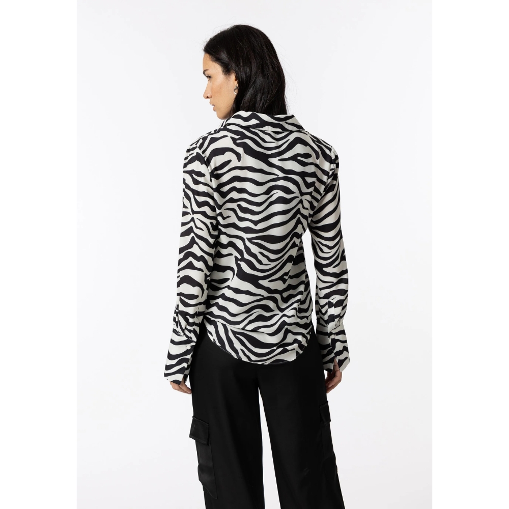 Camisa con cuello solapa y manga larga. Cierre frontal con botones.