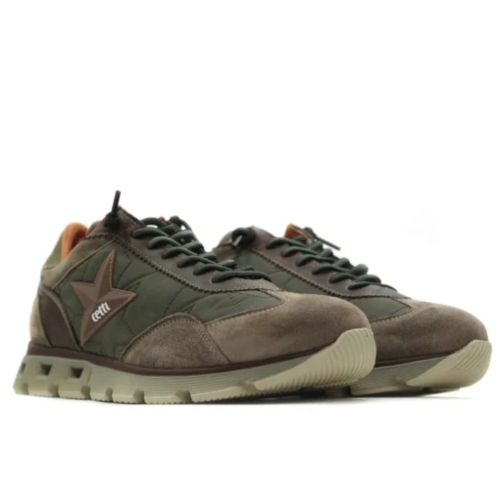 Zapatos casual estilo deportivos, confeccionados en combinación de material textil y paneles de piel de primera calidad, con cierre de cordones elásticos, forro interior textil y piel y suela alta de goma.