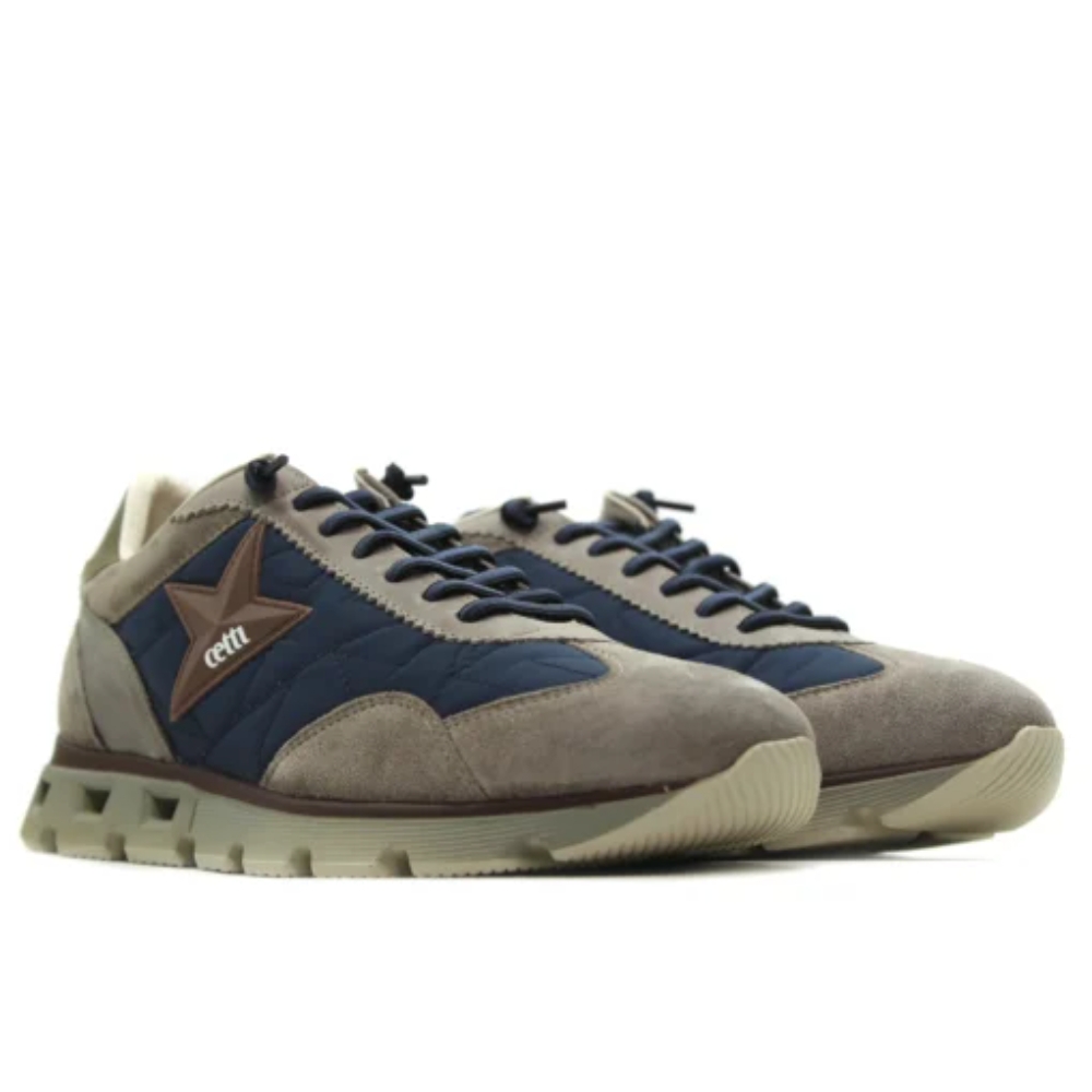 Zapatos casual estilo deportivos, confeccionados en combinación de material textil y paneles de piel de primera calidad, con cierre de cordones elásticos, forro interior textil y piel y suela alta de goma.