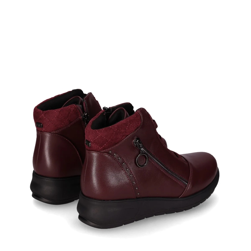 Botín clásico con aplicaciones decorativas. Estos botines de estilo casual cuentan con una cremallera lateral a modo de cierre complementario, detalles de costura decorativa y pequeñas tachuelas metálicas cerca de la puntera. El patrón acolchado en la parte trasera añade un toque confort y elegante. ¡Perfectas para tus looks más confort!