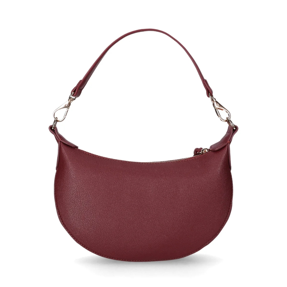 Bolso con Diseño Elegante y Curvo: Este bolso presenta una forma curva con una sola asa unida por herrajes metálicos. Su diseño minimalista incluye un detalle decorativo en la parte frontal inferior. Ideal para complementar un look moderno y sofisticado.