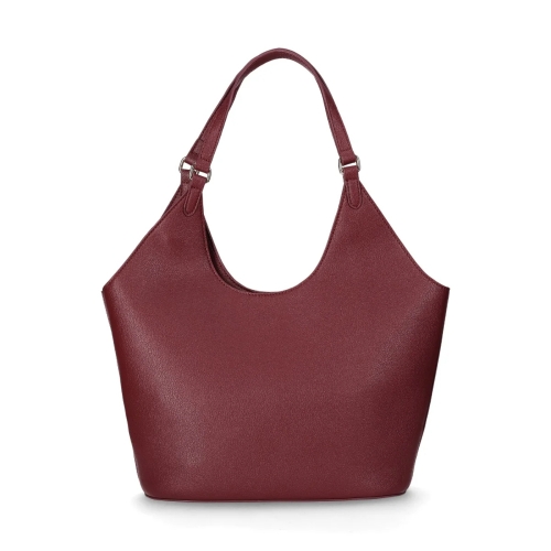 Bolso con Diseño Elegante y Curvo: Este bolso presenta una forma curva con una sola asa unida por herrajes metálicos. Su diseño minimalista incluye un detalle decorativo en la parte frontal inferior. Ideal para complementar un look moderno y sofisticado.