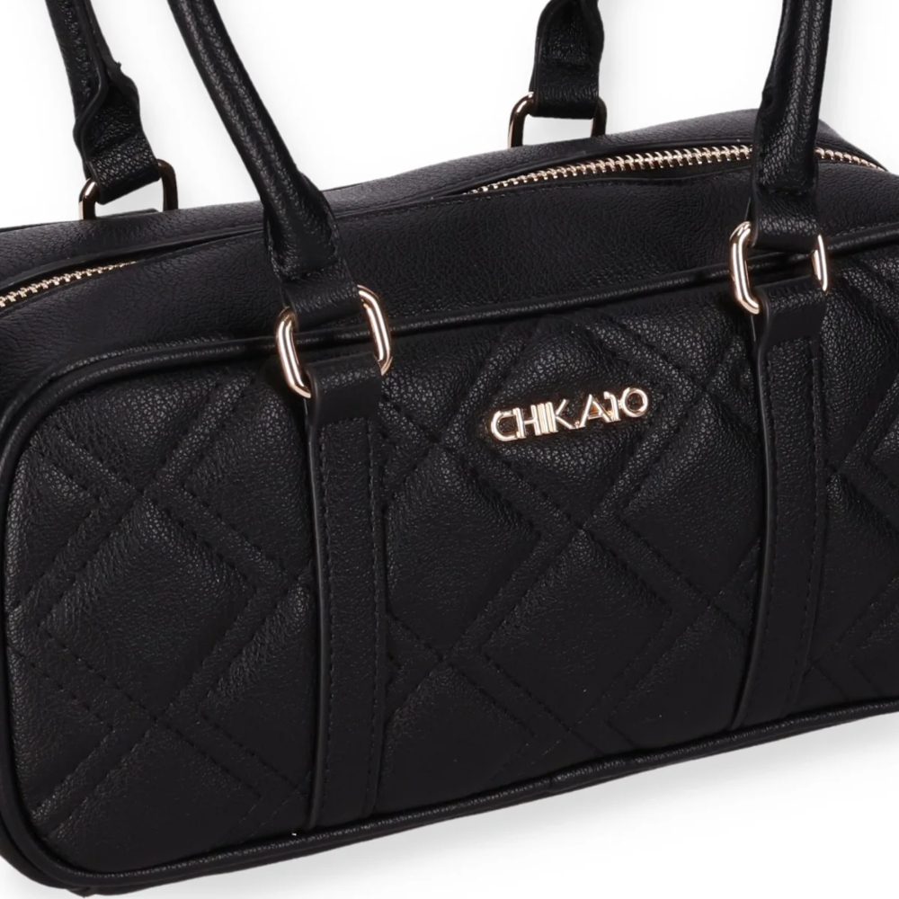 Bolso con Diseño Acolchado y Asas Largas: Este bolso presenta un diseño elegante y funcional con un patrón acolchado en la parte frontal. Cuenta con dos asas largas y un cierre superior de cremallera. Ideal para complementar un estilo práctico y refinado.