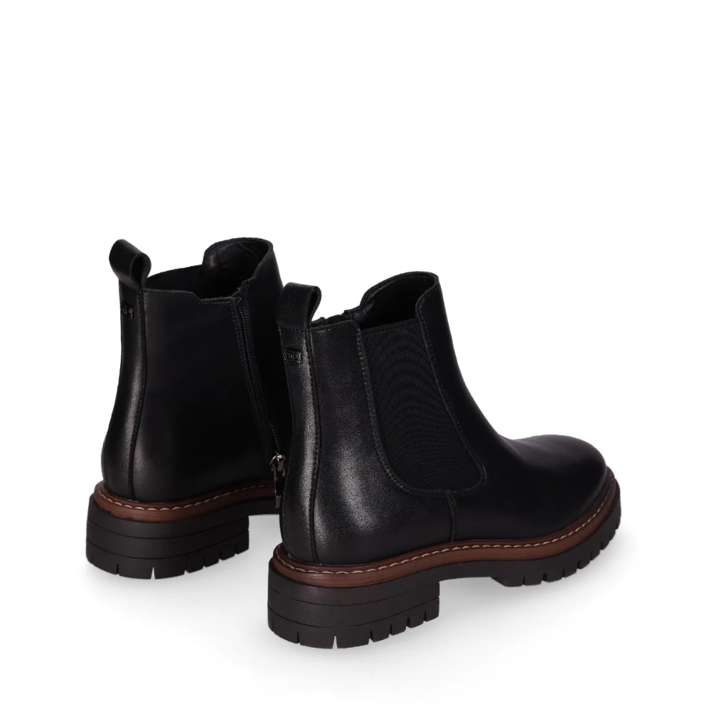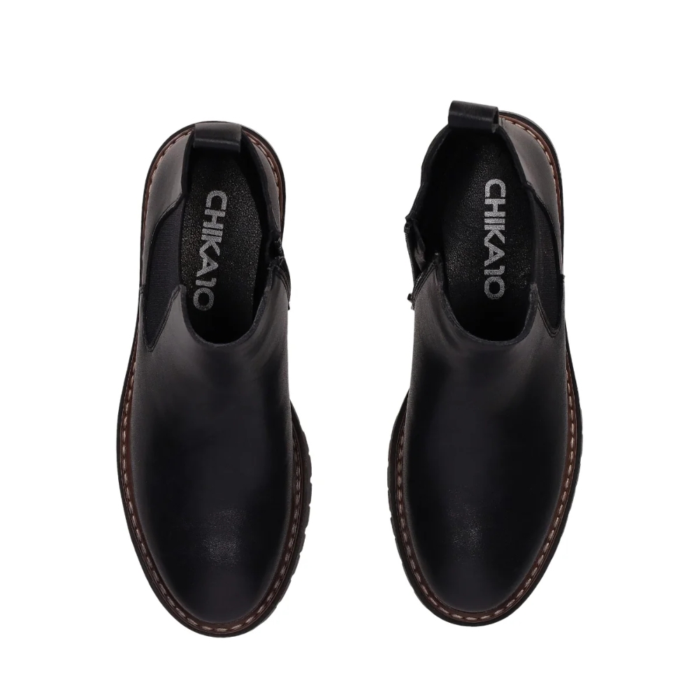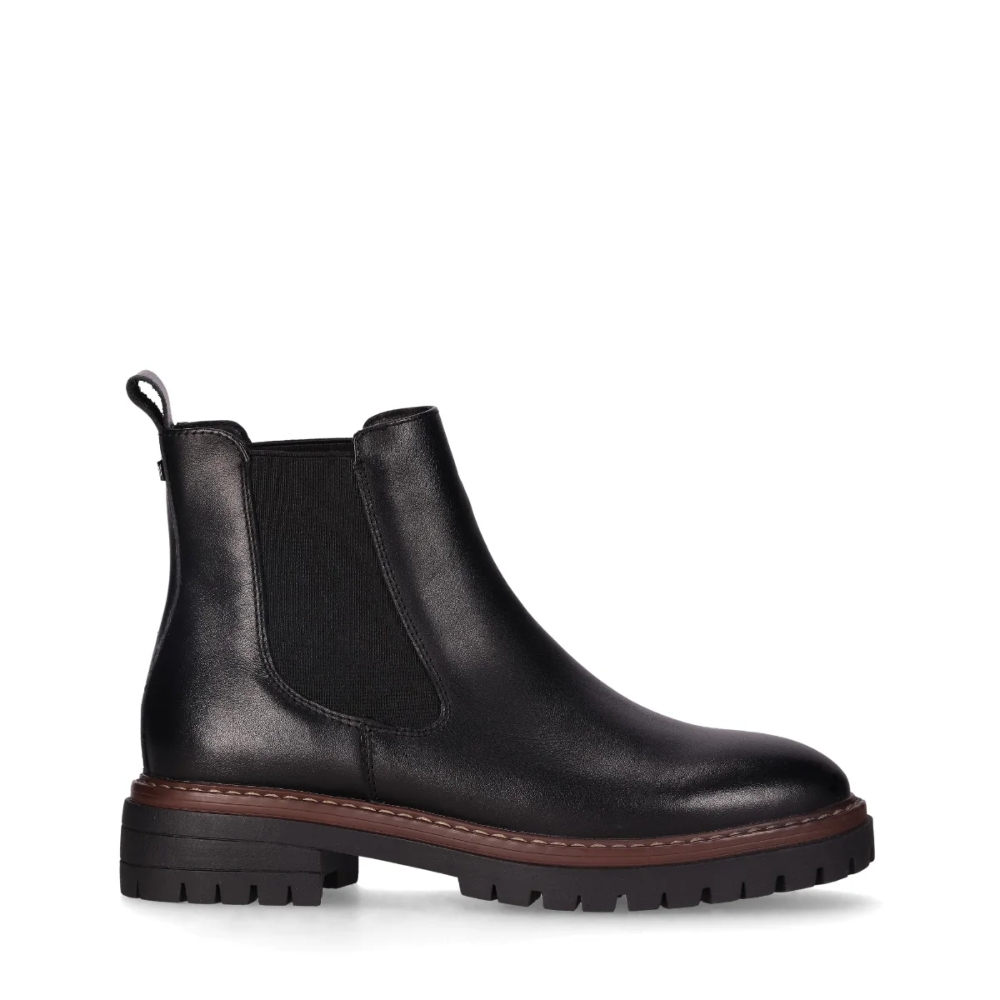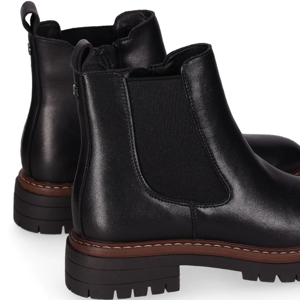 Botín chelsea de piel con suela gruesa: Este botín chelsea presenta un diseño clásico con paneles elásticos y un tirador en la parte trasera para una fácil colocación. La suela gruesa y con patrón rugoso proporciona tracción y un toque moderno. Ideal para combinar con cualquier look. ¡Estilo y funcionalidad en cada paso!