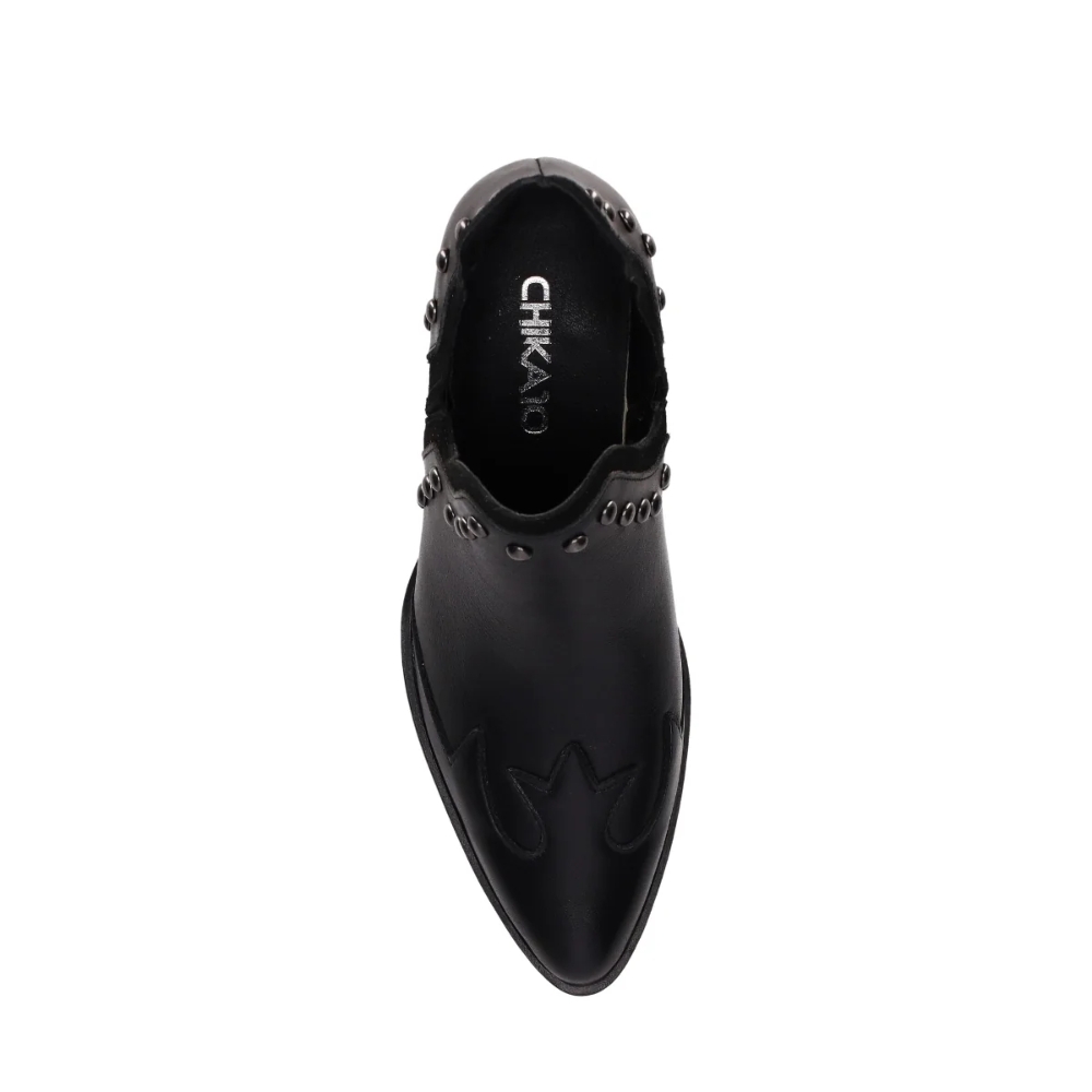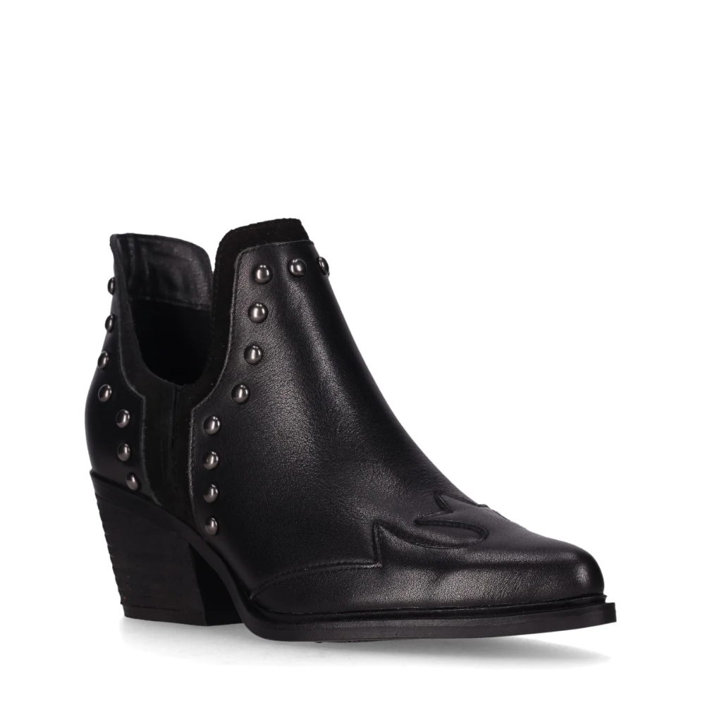 Botín de Gamuza con Tacón Bajo y Detalles Metálicos: Botín estilo campero con tacón bajo y detalles metálicos decorativos en los laterales. Su diseño moderno y estilizado lo hace perfecto para los entusiastas de la moda que buscan opciones de calzado a la última, ¡Marca tendencia con cada paso!