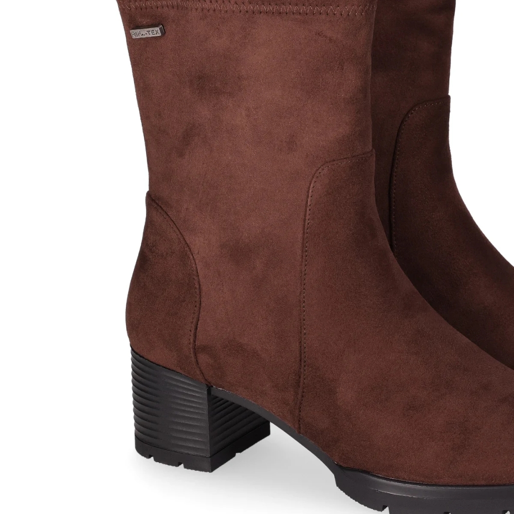 Botín de tacón estilo calcetín. Con una tacón grueso, el botín esta diseñado en tela elástica simulando un calcetín pegado a la piel. Incorpora una membrana protectora que garantiza mayor comodidad y protección durante todo el día. Con su caña media ajustada y suela confort, ¡será el básico para cualquier ocasión!