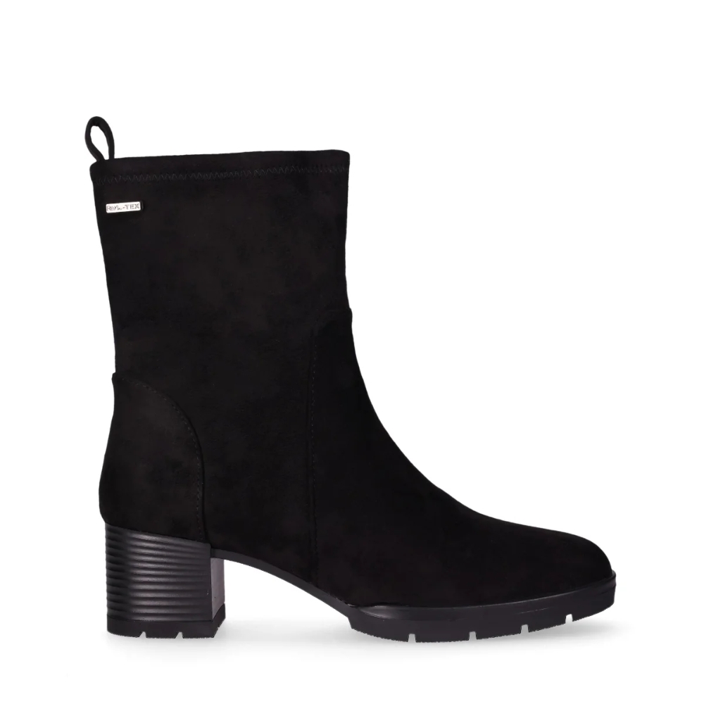 Botín de tacón estilo calcetín. Con una tacón grueso, el botín esta diseñado en tela elástica simulando un calcetín pegado a la piel. Incorpora una membrana protectora que garantiza mayor comodidad y protección durante todo el día. Con su caña media ajustada y suela confort, ¡será el básico para cualquier ocasión!