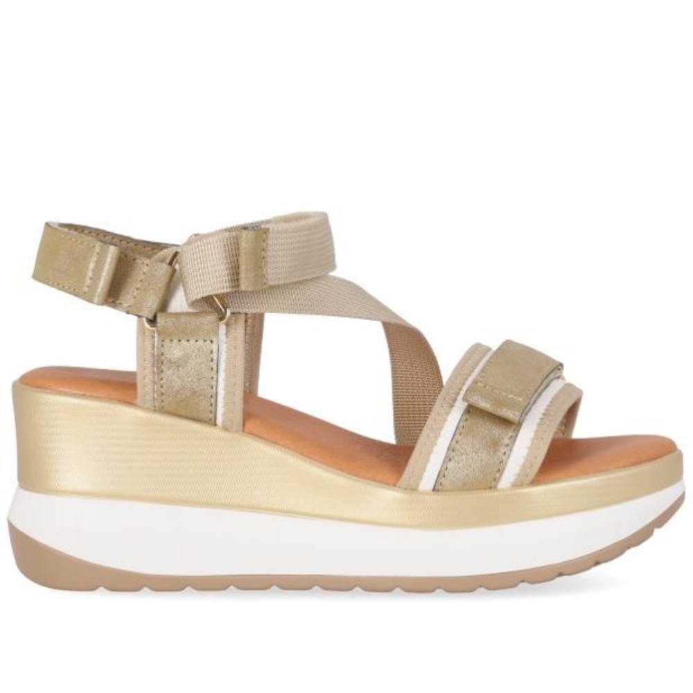 Sandalia con cuña baja de mujer. Diseñadas con correas ajustables de velcro y una suela de dos capas, ofrecen un ajuste perfecto y comodidad todo el día. ¡La combinación ideal de comodidad y elegancia para tus días de verano!
