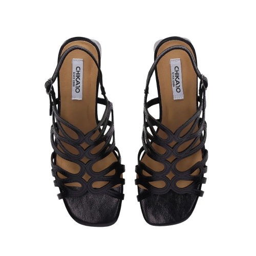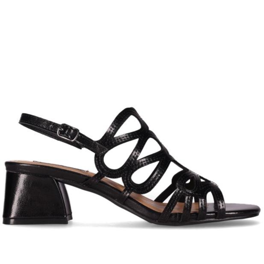 Sandalia tacón bajo, con tiras entrelazadas y detalles metalizados con hebilla. Diseñada en material efecto piel, con su tacón bajo, proporciona estabilidad y comodidad para todo tu día. ¡Pisa con confianza, pisa con estilo!