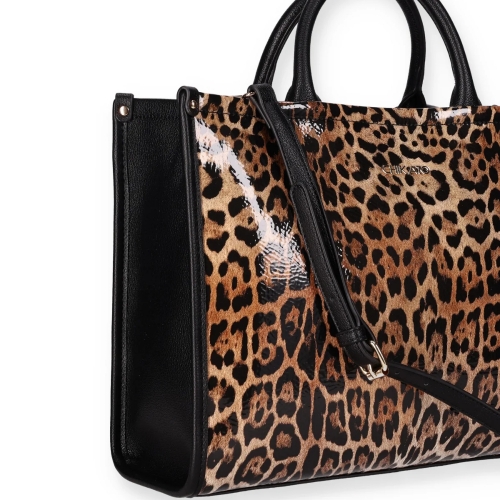 Bolso con Estilo de Animal Print: Este bolso presenta un diseño llamativo con estampado de animal print y detalles lisos en las asas y la correa. Incluye un cierre superior de cremallera y espacio interior amplio, ideal para añadir un toque atrevido y moderno a cualquier look.