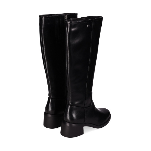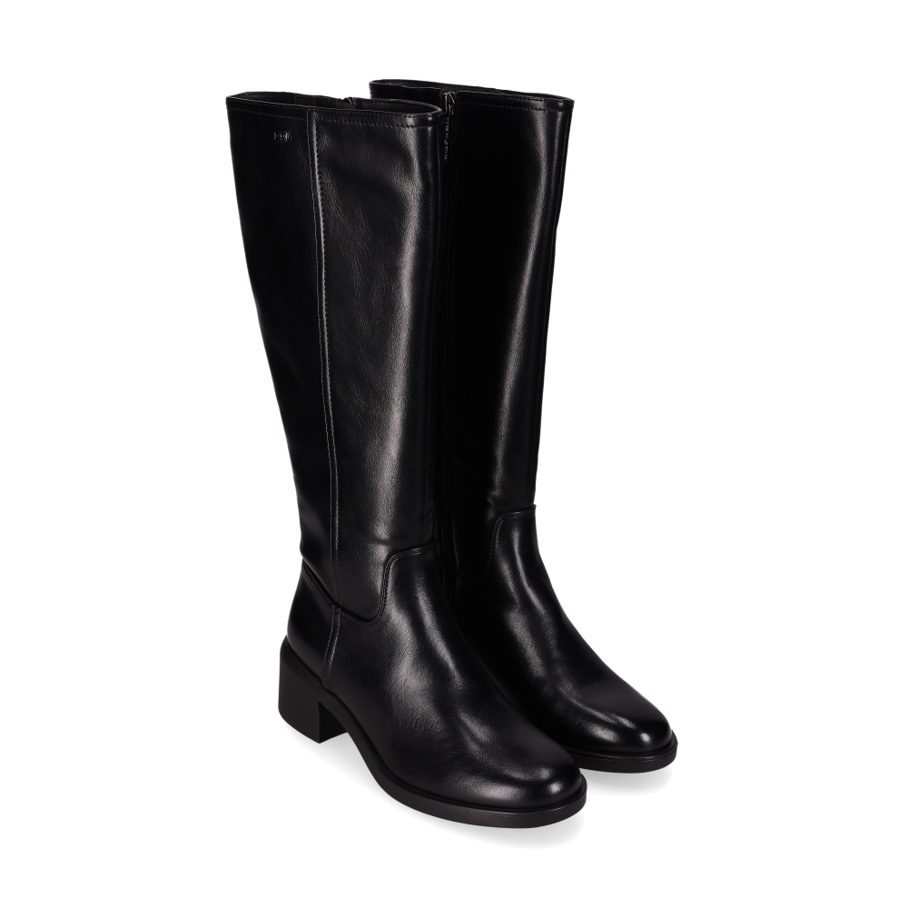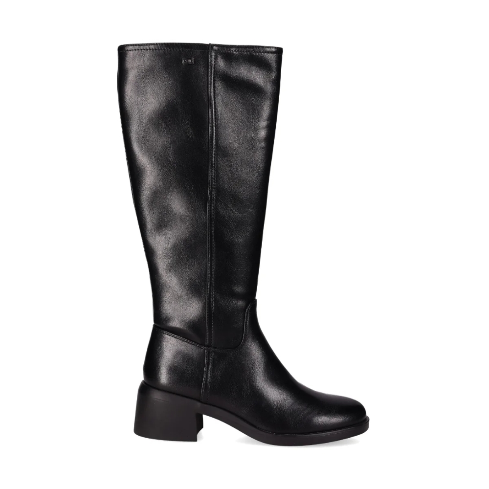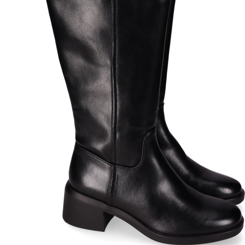 Botas altas diseñadas en piel vegana. Elegante diseño de caña alta con un acabado desgastado y un ligero brillo. La puntera redondeada, un tacón bajo de bloque, la costura vertical y su cierre con cremallera en el lateral añaden un detalle sutil y estilo moderno. ¡Combina estilo y confort en cada paso!
