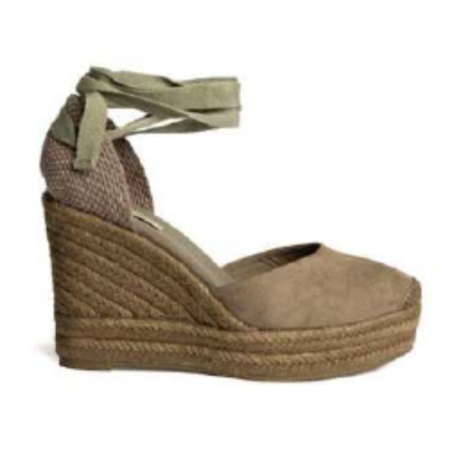 Plataforma tipo valenciana, con cuña en yute. Escote redondo. Cierre mediante tiras anudadas al tobillo.Altura del tacón 10 cm.Altura de la plataforma 3 cm.