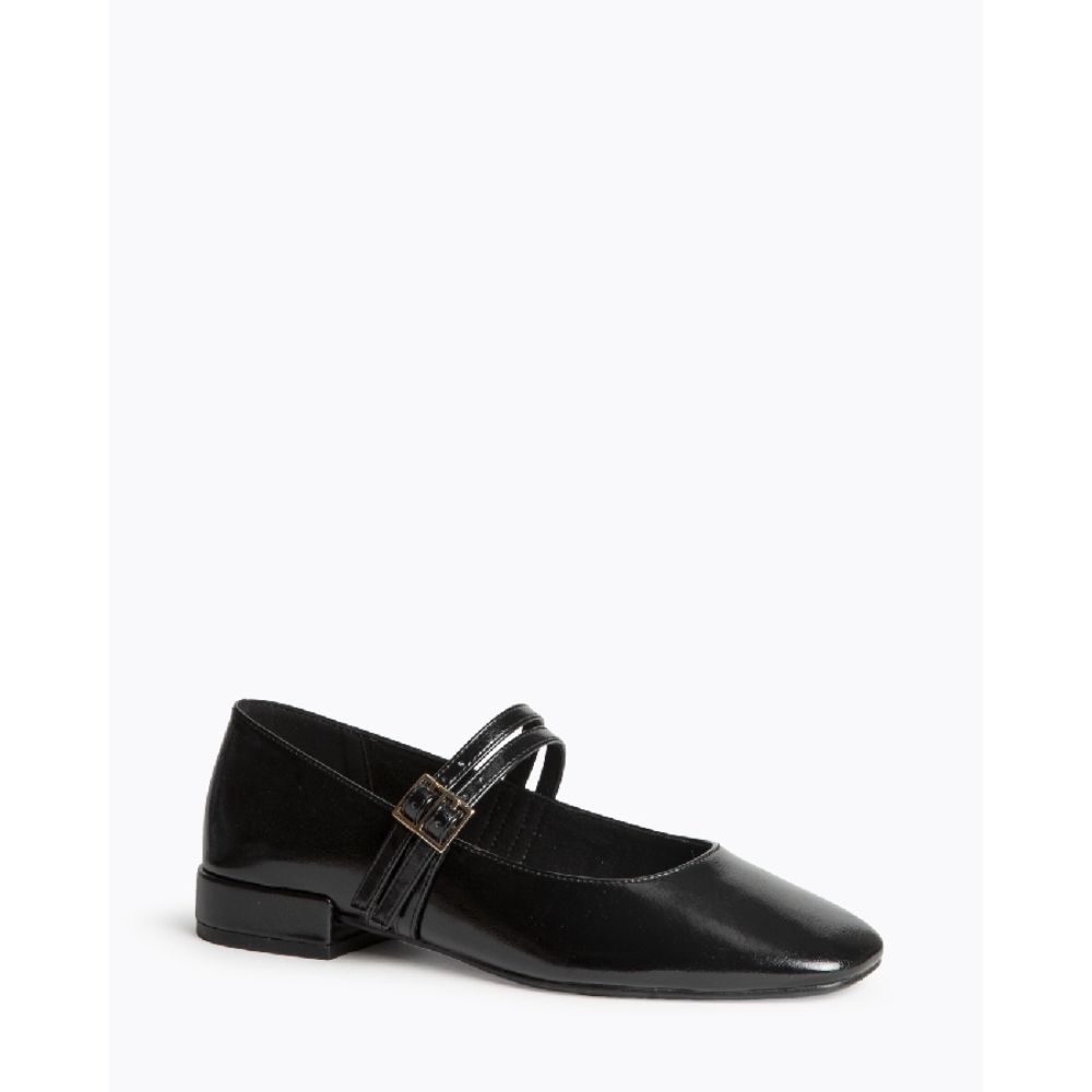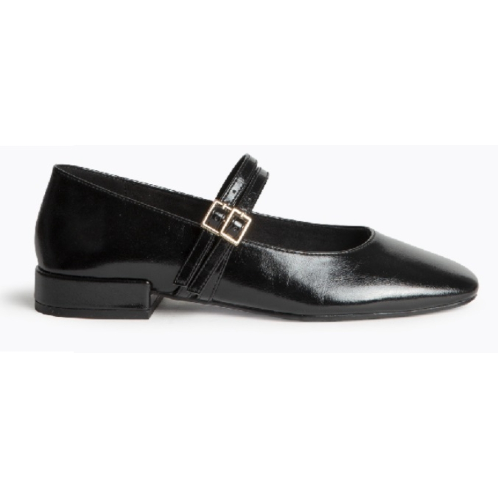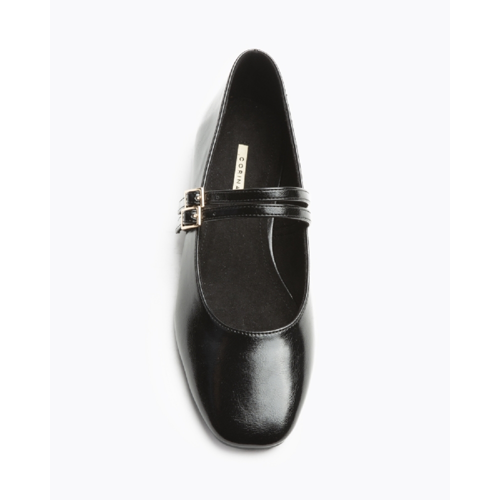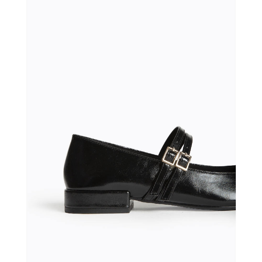 Mary jane plana. Acabado en punta cuadrada, escote redondeado.Doble hebilla en el empeine.Altura de la suela 2 cm.