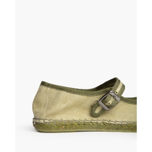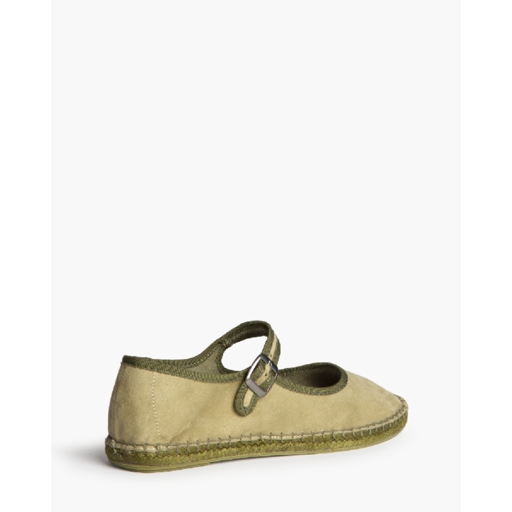 Zapato plano tipo mary jane con suela de yute. Cierre mediante hebi-Ila en el lateral. Acabado en punta redonda.Altura de la suela 1,5 cm.