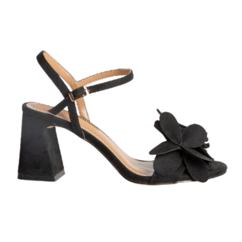 Sandalia con tacon de la marca Corina para mujer. Fabricada en material sintetico con flores en el empeine. Color negro