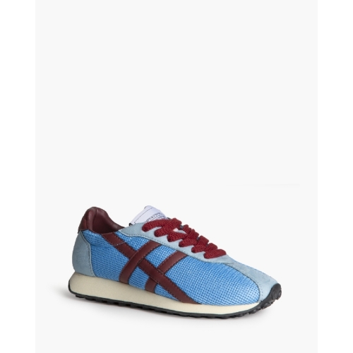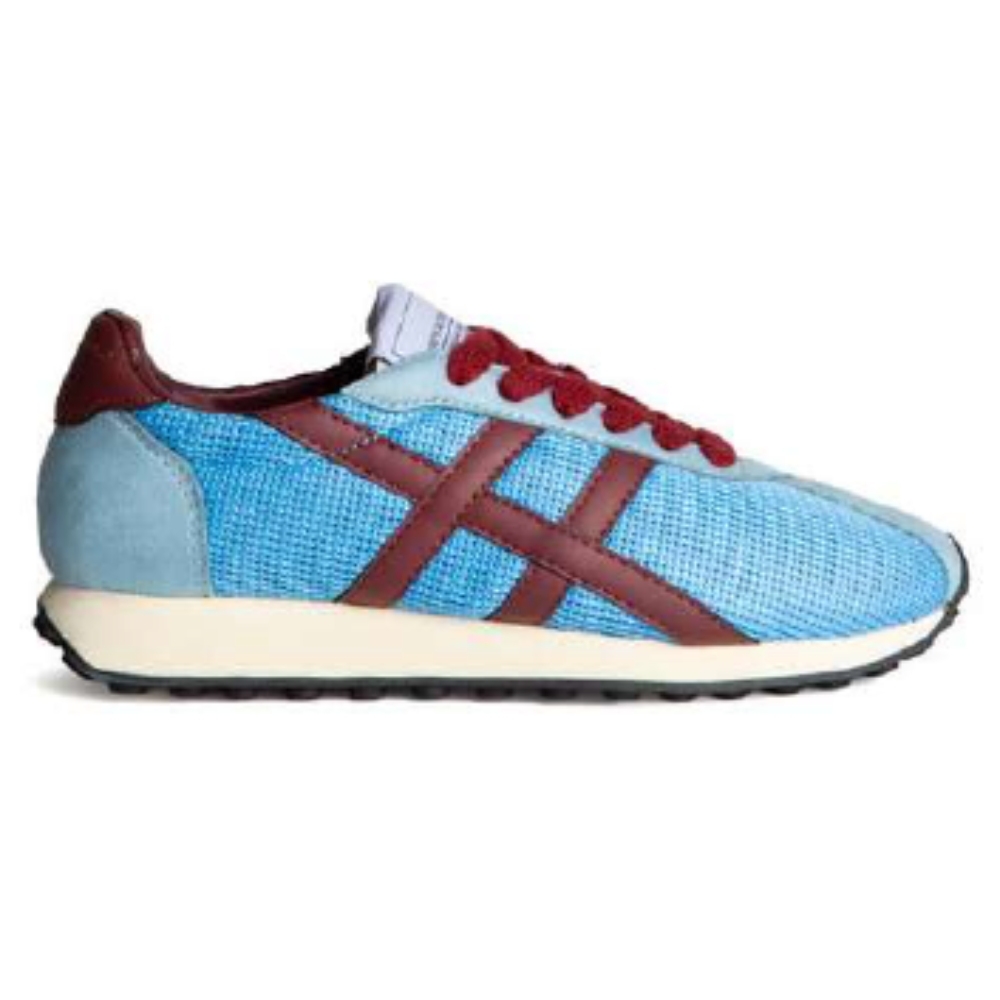 Zapatilla deportiva estilo retro en combinación de materiales. Cierre mediante cordones de seis pasadas.Altura de la suela 3 cm.