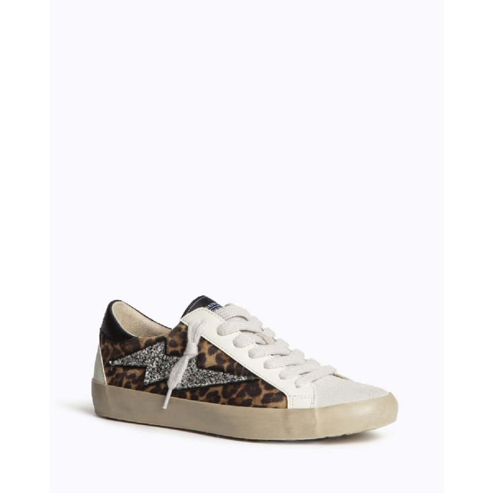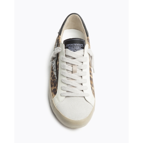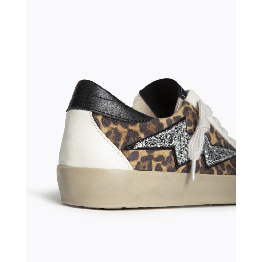Zapatilla de moda de la marca Corina para mujer. Fabricada en material sintético con glitter que aporta unos toques modernos a tu estilo más casual. Color leopardo