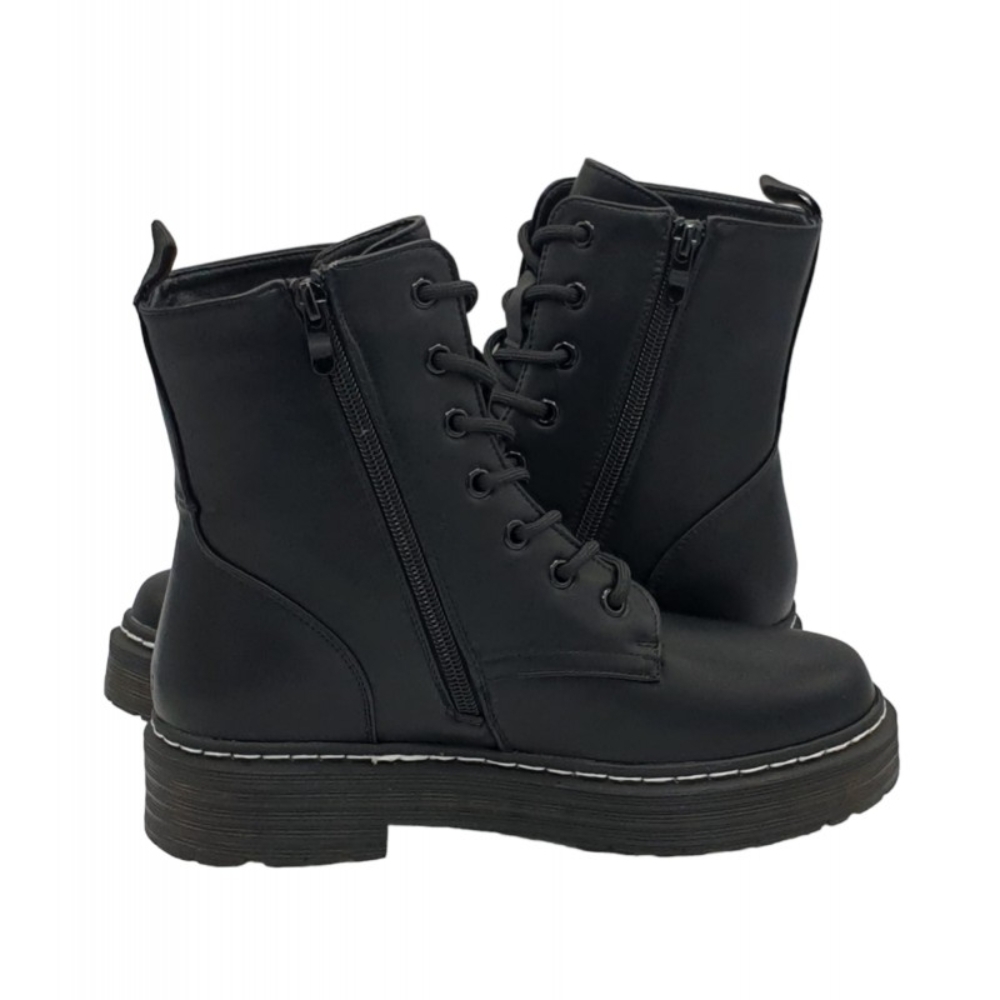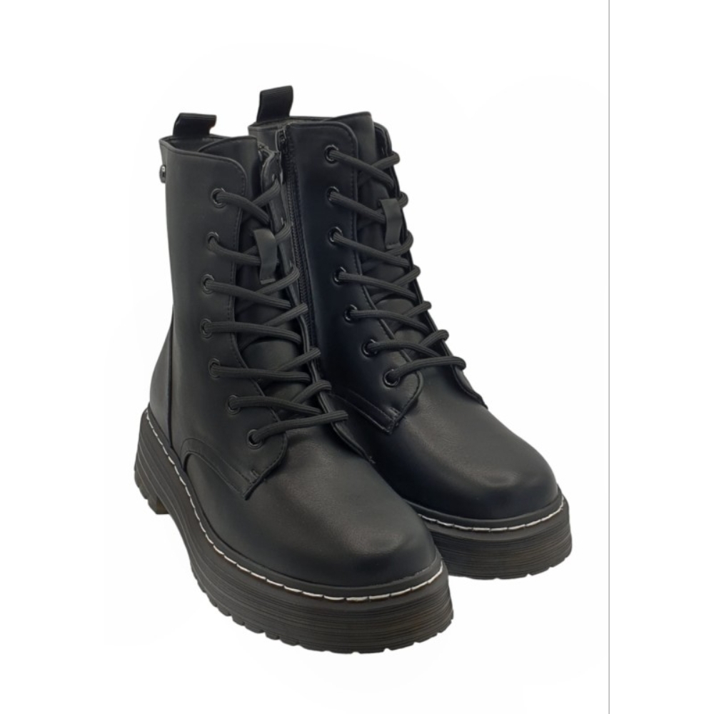 Botín motera, militar de mujer destinado a poner el broche perfecto a tus outfits. Cierre con cordones en la parte frontal y cremallera en el lateral .