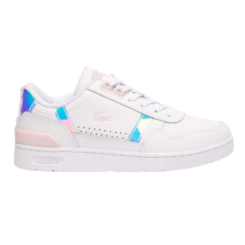 Deportiva estilo casual de la marca Lacoste para mujer. Fabricada en material de gran calidad con tonos metalizados. Color blanco y plata
