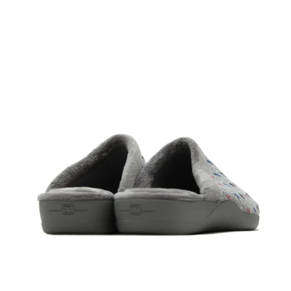 Pantuflas de casa con talón abierto con cuña de 3.5cm de alto, de la marca DeValverde, con forro interior en textil y suela de goma antideslizante. Chinela Ideal para mantener tus pies calentitos en invierno. Zapatilla de casa para mujer, piso con grabado especial rugoso para evitar posibles deslizamientos. Fabricada con tejidos en microfibras y algodón que permiten una constante ventilación. Relleno de corcho natural para una total absorción de los posibles impactos. Plantilla de espuma látex que controla los cambios de temperatura y humedad. Plantilla de espuma látex con mayor componente antibacteriano. Respetuosos con la naturaleza. Utilizando materiales que cuidan al máximo posible el medio ambiente. Componentes más resistentes al lavado, la fricción y el agua. Hecho en España.