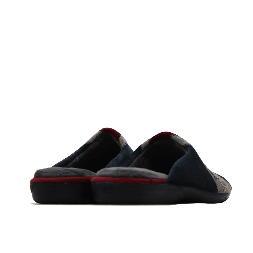 Zapatillas de casa para hombre con talón abierto y dedos cuebiertos, de la marca Devalverde, decorada con sencillez, clásica, pantufla hecha en España en textil, Chinela con forro interior en textil y suela de goma muy cómoda.Piso con grabado especial rugoso para evitar posibles deslizamientos. Fabricada con tejidos en microfibras y algodón que permiten una constante ventilación. Suela con relleno de corcho natural para una total absorción de los posibles impactos. Utilizando materiales que cuidan al máximo posible el medio ambiente. Hecho en España. Lavables a mano. Otoño invierno.