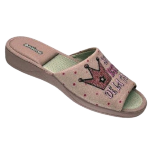 Zapatilla de hogar de la marca Devalverde para mujer. Fabricada en material textil ligero y lavable a máquina. Suela de goma flexible y antideslizante para un mayor agarre y comodidad. Color rosa