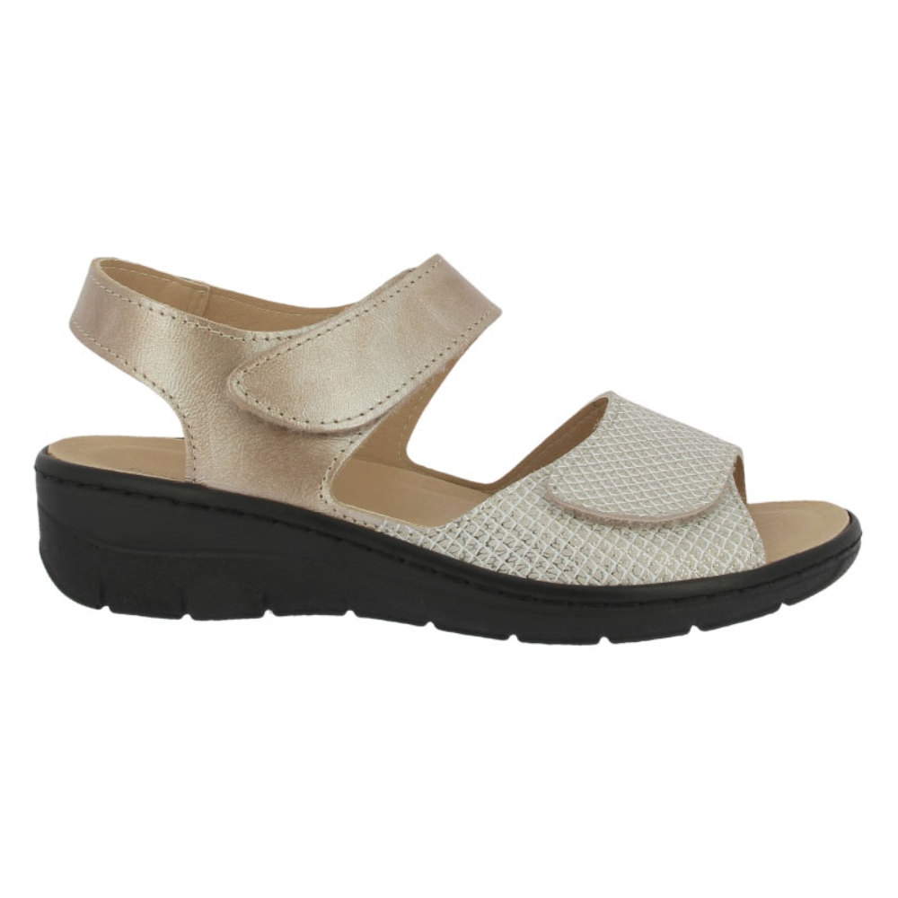 Sandalia de piel de la marca Doctor Cutillas para mujer. Fabricada con piel de gran calidad y cuña baja. Color tormo