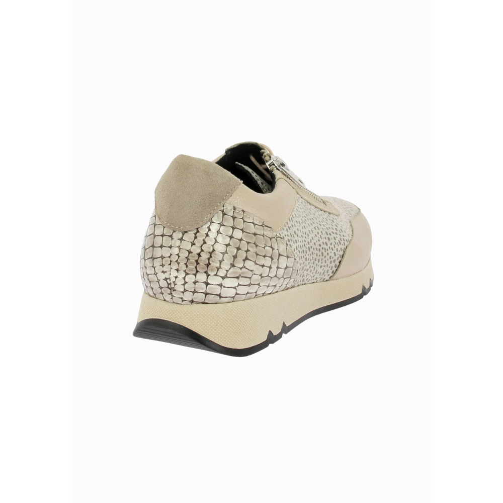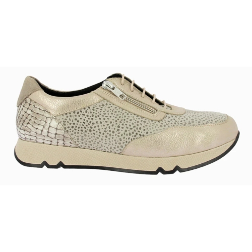 Zapato tipo deportivo para mujer fabricado en combinación de licra estampada con pieles lisas y grabadas en color pico. Cuenta con cierre de cremallera y cordones, plantilla extraíble y suela ligera dentada.