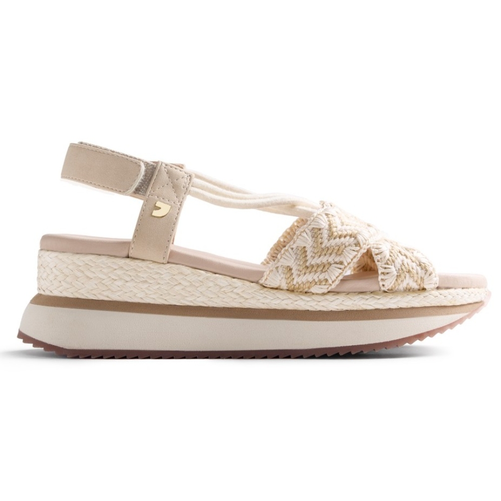 Sandalia con cuña y plataforma de la marca Gioseppo para mujer. Color beig