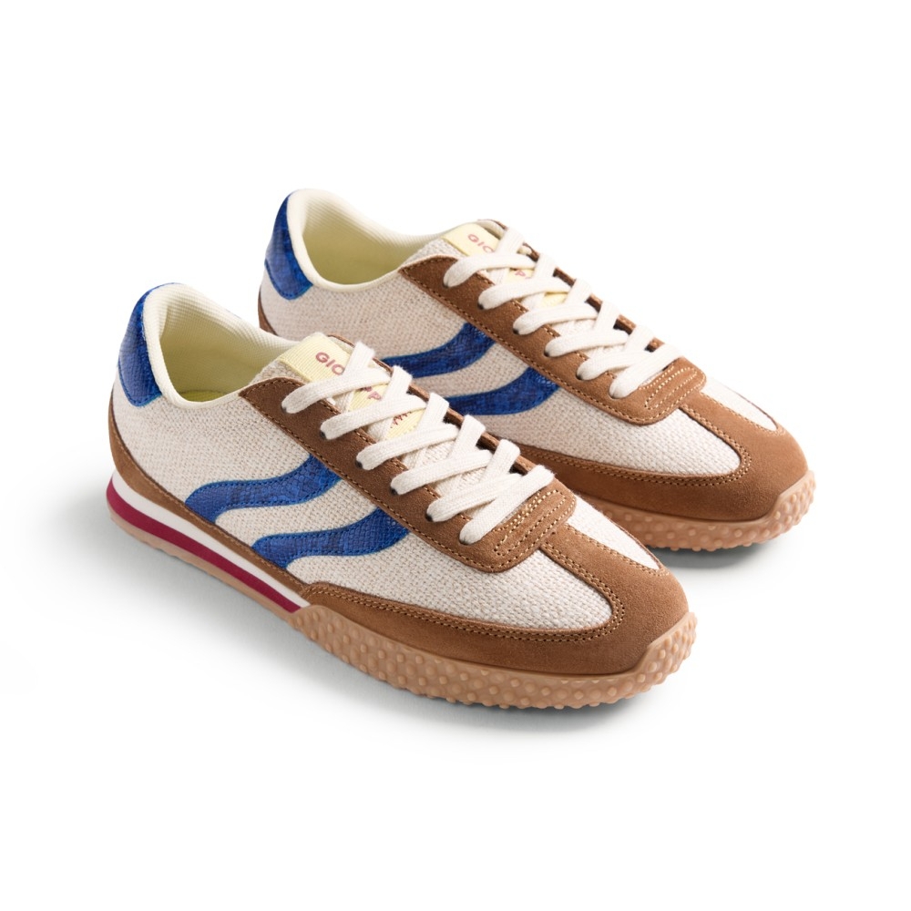 Zapatilla estilo deportiva para mujer. Fabricada en materiales de gran calidad con corte retro. Color beig combinado