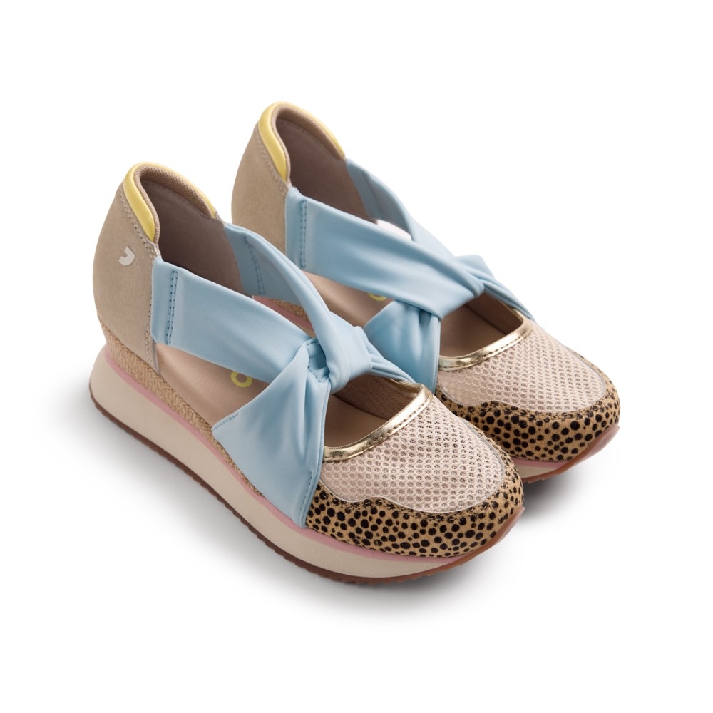 Zapato de estilo deportivo con el empeine descubierto para mujer. Fabricado en materiales de gran calidad con cuña y suela de goma estilo deportiva, ideal para tus looks del día a día. Color azul