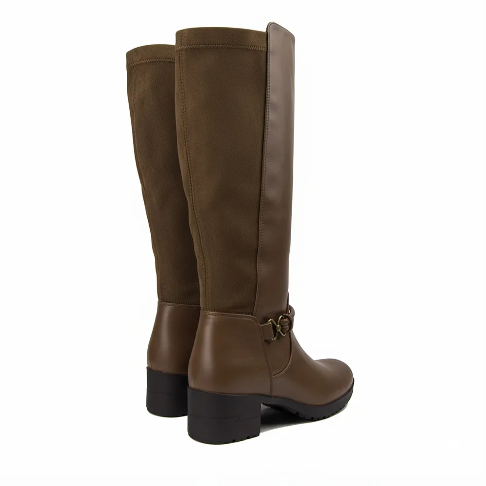 Bota Mujer Hispaflex 2540 combina elegancia, estabilidad y comodidad en un diseño versátil ideal para acompañarte durante todo el invierno. Confeccionada en material que imita la piel combinado en la parte trasera en suave antelina, incorpora una pulsera tobillera decorativa, aportando un toque de estilo moderno y sofisticado.